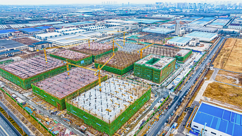 2023年12月26日,蘇宿工業(yè)園區(qū)智慧信息產業(yè)園項目施工現(xiàn)場,工作人員正在有序施工。