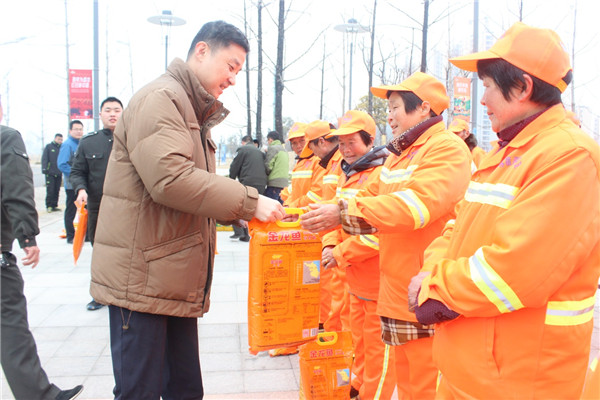 1月18日上午,園區(qū)黨工委委員、管委會(huì)副主任、規(guī)劃建設(shè)局局長(zhǎng)許紹杰帶隊(duì)慰問了奮戰(zhàn)在一線的城市維護(hù)作業(yè)人員,向他們送上了春節(jié)的問候。